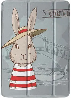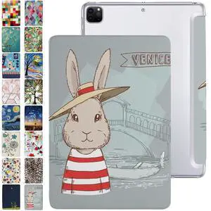 DuraSafe Cases for iPad PRO 12.9 Inch 4th [ Pro 12.9 4 Generation 2020 ] A2229 A2069 MY3K2LL/A MY3J2LL/A MY2H2LL/A MY2J2LL/A Trifold Printed PC Lightweight Protective Clear Back Cover - Bunny Hat