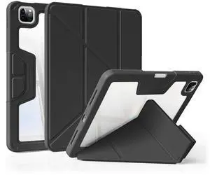 zoyu for iPad Air 11-inch 7th (M3) 2025/ 6th (M2) 2024/ Air 5th / 4th Gen 10.9"/ iPad Pro 11" 4th/3rd/2nd/1st Gen with Pencil Holder, Clear Transparent Back, Cover Multiple Stand Angles, Black
