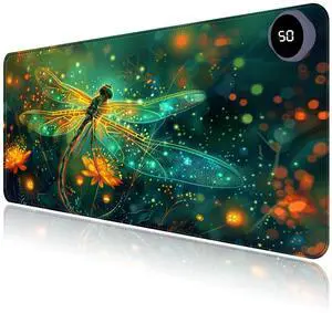 Heated Mouse Pad with 3 Levels Heated & 3 Hours Auto Shut-Off Mouse Pad for Warming Hands in Office Home, 31.5" x 13"Large Safe Desk Mat Hand WarmerGlowing Dragonfly
