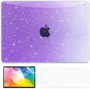 QJUZO Compatible with MacBook Air 13 inch Case 2025 2024 2023 2022 M4 M3 M2 (Model A3240 A3113 A2681) Sturdy Glitter Laptop Hard Shell for MacBook Air 13.6" + Keyboard&Screen Cover, Gradient Purple