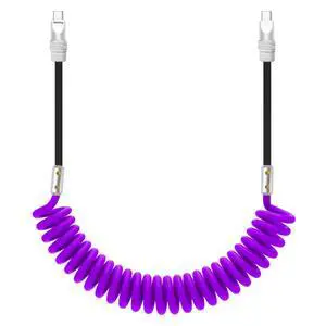 chubbycable Curly Chubby 240W Coiled USB C Cable Retractable Fast Charging Cable for Car Charger Cord Compatible with iPhone 17-15 Series, Purple and Black, Type-C to Type-C, 2.29FT-3.6FT