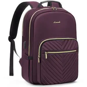 LOVEVOOK Laptop Backpack for Women 17.3 inch,Cute Womens Travel Backpack Purse,Professional Laptop Computer Bag,Waterproof Work Business College Teacher Bag Carry on Backpack with USB Port,Deep Purple