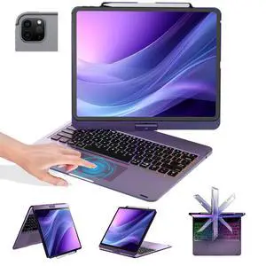 BABG Keyboard Case for iPad Air 13 inch(M3/M2)&iPad Pro 13(M5/M4),iPad Pro 12.9(6th/5th /4th/3rd Gen) Case with Keyboard,360 Rotatable,Toupad,Backlits,Pencil Charging-Midnight Purple