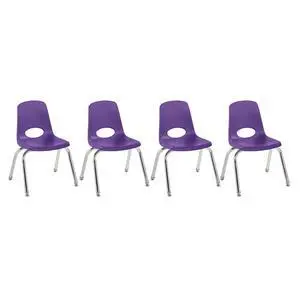 FDP 12" School Stack Chair, Stacking Student Seat with Chromed Steel Legs and Nylon Swivel Glides for in-Home Learning or Classroom - Purple (4-Pack), 10379-PU