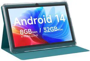 Android 14 Tablet 7 inch Tablets with Case, 8GB RAM 32GB ROM 1TB Expand, Quad-Core Processor Tablet PC, 1024 x 600 IPS Screen, Dual Camera, 3000mAh Battery, Bluetooth, WiFi, GMS, Widevine L1, Navy