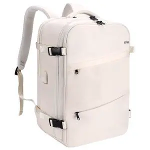 HOMIEE 50L Travel Backpack Large Suitcase Water Resistant Luggage Daypack Carry on Backpack for Men Women Fits 17.3 Inch Laptop, Beige