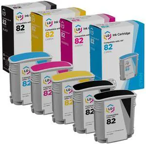 LD Remanufactured Ink Cartridge Replacement for HP 82 (2 Black, 1 Cyan, 1 Magenta, 1 Yellow, 5-Pack) Compatible with DesignJet 500 500PS 510 800 800PS 815MFP 820MFP cc800ps