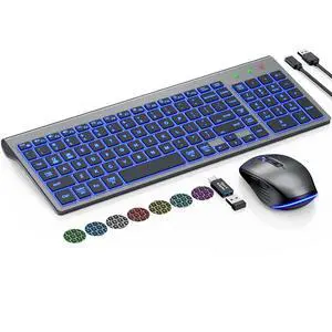 SABLUTE Wireless Keyboard and Mouse Combo Slim Quiet Backlit Space Gray Keyboard with RGB Mouse, Dual-System for Mac & Windows, Rechargeable Portable Cordless Set for Home Office