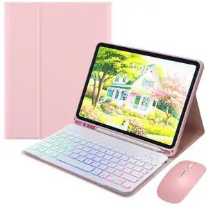 kaidisen Backlit Keyboard for iPad mini (A17 Pro) 2024/ iPad mini 6th Generation Case with Mouse and Detachable RGB Colorful Backlight Color Keyboard Case,Dark Pink+White