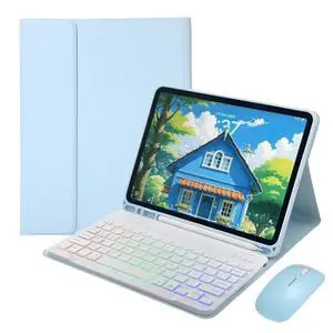 kaidisen Backlit Keyboard Case for Galaxy Tab S10 Lite / S10 FE / S9 FE 10.9", Tab S9/S8/S7 11" Case with Mouse and Detachable RGB Colorful Rainbow Backlight Keyboard,Mist Blue+White