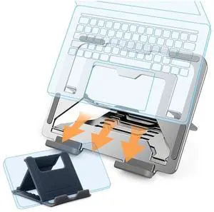 Foldable & Portable Laptop Stand for Desk, Light Weight Alloy Silicon, Ergonomic Aluminum Riser with 7 Adjustable Heights, Compatible with Laptop 10-16' and Tablet