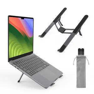 Magnetic Adjustable Travel Laptop Stand for Digital Nomads and Business Travelers. Compact, Foldable, and Ideal for Desk Use. Elevate Your Work Experience with Our Laptop Riser on the Go (Dark Gray)