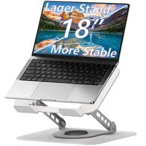 TAPMEI Adjustable Laptop Stand, 360 Rotating Computer Riser, Stable Base Stand Holder for MacBook Pro/Air Notebook up to 18 Inches, Silver