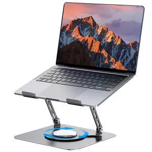 HIOEFCORE Laptop Stand, Laptop Stand for Desk with 360 Rotating Base, Ergonomic Laptop Riser for Desk with Adjustable Height, Heat Dissipation, Fits with All Laptops 10-17.3"