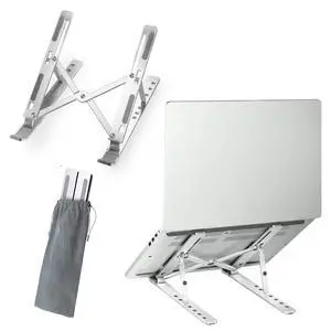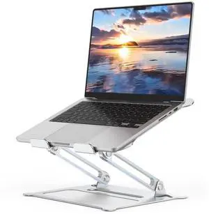 UFVCOV Aluminum Adjustable Laptop Stand, No Wobble Laptop Riser, Foldable Computer Notebook Stand Holder for 10-17" Laptops, Lightweight & Sturdy, Silver/B