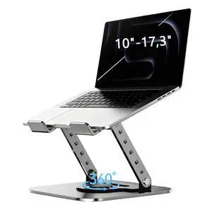 SENZANS Adjustable Laptop Stand for Desk, 360 Rotating Base Portable Laptop Stand, Aluminum Alloy Foldable Computer Printer Riser Holder for Office Home Fits MacBook Air Pro, HP (10-17.3'') - Silver