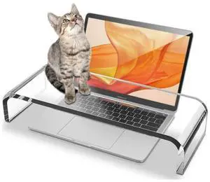 CalorMixs Acrylic Cat-Proof Laptop Stand & Keyboard Protector - 19.7" Clear Monitor Riser with Non-Slip Base for Home Office, Ergonomic Desk Organizer (Supports 50lbs)