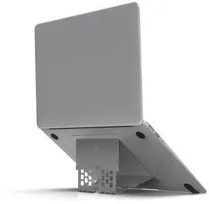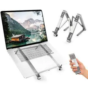SOYMIX Ergonomic Laptop Riser for Desk Adjustable Height Portable Sit to Stand Design Promote Healthy Posture Neck Pain Relief Home Office Use Fits 10~17" Devices MacBook Air Pro Compatible Silver
