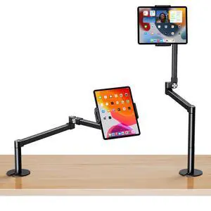 elitehood Long Arm iPad Desk Mount with Grommet Mounting Base, Heavy Duty Aluminum Tablet Holder for Desk, Swivel Arm Mount for iPad Pro 13/12.9 Air Mini, iPhone and 4.7-13in Tablets