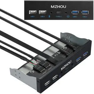 MZHOU USB2.0 + 3.0 Metal Front, 5.25 inch 19Pin Front Panel Adapter, 4 USB 3.0 Port hubs and (1HD Audio Port / 1TPY-C Port / 1 Microphone Input)