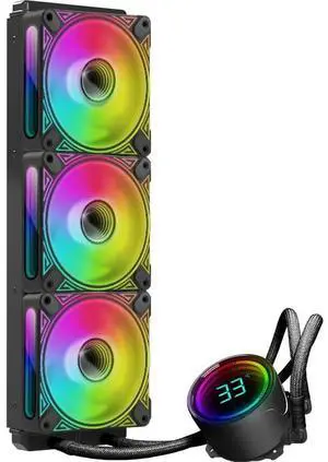 T-360MM Black ARGB Liquid CPU Water Cooling with 3 X 120mm ARGB PWM Fan,Temperature Display, Computer Water Cooling