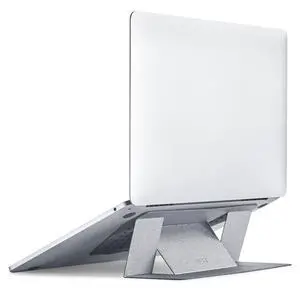 MOFT Laptop Stand for Desk, Adhesive MacBook Computer Stand with 2 Adjustable Viewing Angles, Foldable and Portable Laptop Riser Compatible with 11"-16" Laptops, Silver(Adhesive Version)
