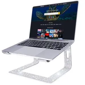 Leuhiove Bling Aluminum Laptop Stand,Glitter Ergonomicic Computer Stand for Desk with Sparkle Rhinestones,Detachable Notebook Riser Compatible with Air, Pro, Dell, HP, 10-15.6" Laptops (Silver)