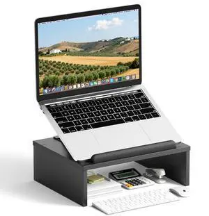 AFOOYO Adjustable Wood Laptop Stand with Storage Space - Notebook Organizer & Ergonomic Computer Riser, Wrist Rest Included, Compatible with 9.8-15'' Laptops (MacBook Air Pro/HP/Dell/Lenovo),Black