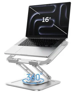 Laptop Stand for Desk, Adjustable Height & Angle Portable Aluminum Laptop Riser & Monitor Stand with 360 Swivel, Foldable Ergonomic Computer Stand for 10-17 Inch Laptops (MacBook/Dell/HP), Silver.