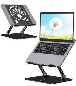 ALASHI Laptop Stand for Desk with 360 Rotating Base, Multi-Angle Adjustable Laptop Stands, Foldable Laptop Riser Compatible with 10 to 15.6 Inches PC Computer, Grey