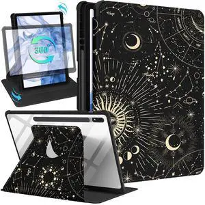 Wazzasoft for Samsung Galaxy Tab S7 Fe/S7 Plus/S8 Plus Case 12.4 Inch Folio Cover Pencil Holder Women Girls Cute Girly Sun Moon Unique Design Rotating Tablet S8 Plus 2022/S7 Plus 2021/S7 FE 5G Cases