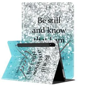 Case for Samsung Galaxy Tab S8 Plus 2022/ Tab S7 FE 5G 2021/ Tab S7 Plus 2020 Tablet 12.4-inch, Multi-Angle Bracket with Automatic Sleep/Wake Protection Case - Flower Bible Psalm 46:5