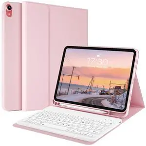 kenke Keyboard Case for iPad Air 11 Inch (M3/M2) 2025/2024, iPad Air 5th/4th Generation 10.9 Inch 2022/2020, Stand Folio Slim Cover with Pencil Holder, Detachable Wireless Keyboard, Pink