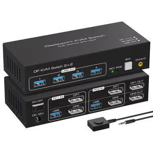 eKL USB 3.2 Switch for 4 Computers, 2 USB-C+2 USB-A 10Gbps Inputs, Share 1 USB-C+3 USB-A Peripherals Like Mouse Keyboard Printer Scanner, with 3.5mm Mic Headphone Jack, Includes 4 Cables & Controller