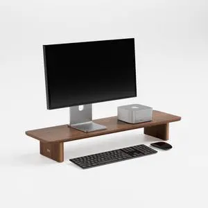 FISUA Minimalist Walnut Wood Veneer Monitor Stand Single-Screen Desk Riser with Natural Wood Grain for iMac & Modern Workspaces (Walnut, Medium)