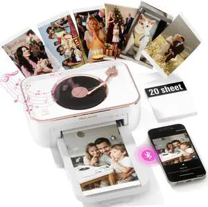 PRT 4x6 Photo Printer with 20 Sheets & 1 Ribbon, Portable Photo Printer for iPhone/Android, Ideal Gift for Home & Scrapbooking Use, White