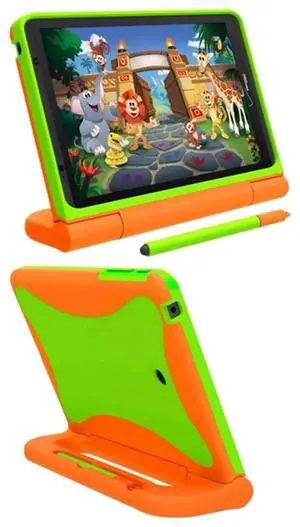 Verizon Rugged Case for Ellipsis 8 Tablet ^^ Ellipsis Kids Tablet ^^ Shockproof Light-Weight, Kickstand Handle - Orange/Neon Green