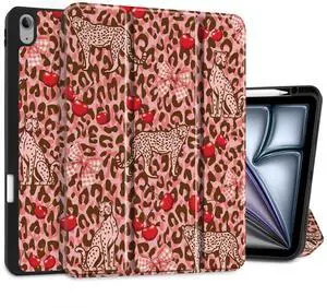 DONGKE for iPad Air 13 Inch Case M3 2025, M2 2024 - [Built-in Pencil Holder] Slim Trifold Stand Shockproof Protective Cover with Soft TPU Back Support Auto Sleep/Wake - Cheetah Bow