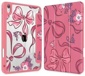 Mektron Case for 2025 iPad Air 13 inch M3 Cover Compatible 2024 iPad Air 13 inch M2 with Pencil Holder, Shockproof Clear Shell + Trifold Stand, Flowers-Bows-Red