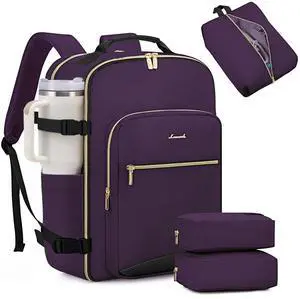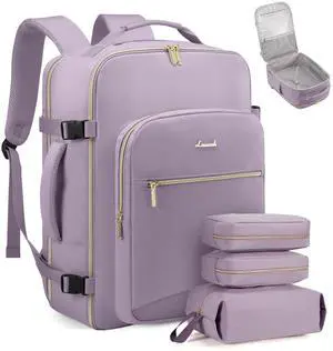 LOVEVOOK Travel Backpack for Women & Men 40L,Airline Approved Carry On Backpack Travel Essentials,TSA Carry on Luggage,Waterproof Personal Item Travel Bag,Suitcase with 3 Packing Cubes,Light purple