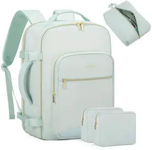 LOVEVOOK Travel Backpack for Women & Men 40L,Airline Approved Carry On Backpack Travel Essentials,TSA Carry on Luggage,Waterproof Personal Item Travel Bag,Suitcase with 3 Packing Cube,Mint green-Black