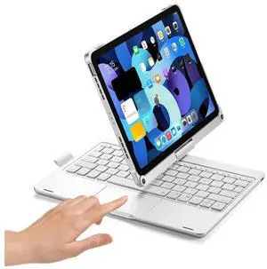 HENGHUI 360 Rotatable Keyboard Case for iPad Air 5th 4th Generation 2022/2020, iPad Pro 11 inch 4th 3rd 2nd Gen Backlight Keyboard with Trackpad, Bluetooth Foldable Keyboard Cover (Silver)