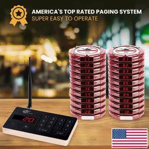 Pager Genius Complete 20 Restaurant Wireless Pager System *20 Table Guest Pagers/Buzzers - Zero Monthly Fees With USA Customer Support and Warranty - Page Smart With Pager Genius!