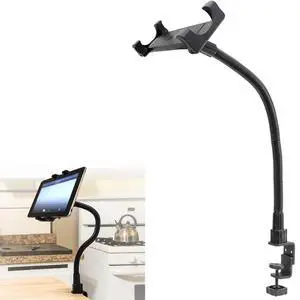 ChargerCity 22" Heavy Duty Adjustable Aluminum Tablet & Smartphone Counter Top Kitchen Home C Clamp Mount Holder Best use for Takeout & Togo Orders (UBER EATS ^^ DOORDASH ^^ Grub Hub)