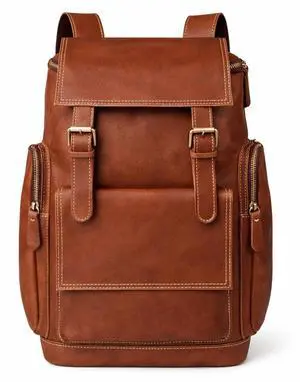 Bebowden Genuine Crazy Horse Leather Backpack - Vintage Bag with Anti-Theft Design, Fits 16 Inch Laptop(5098-Khaki)