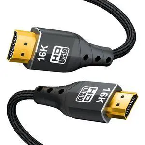 ConnBull 16K HDMI 2.2 Cable 96Gbps 16.4FT/5M, Ultra High Speed HDMI Braided Cord Support 4K@480Hz 8K@240Hz, HDCP 2.2&2.3, Dynamic HDR, eARC,DTS:X, Compatible with Roku TV/HDTV/PS5/Blu-ray