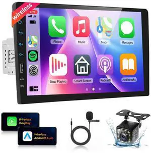 Single Din Car Stereo Radio with Carplay Android Auto,7 Inch HD IPS Manual Touch Screen,5.0Bluetooth Car Stereo with Backup Camera,GPS,Mirror Link,SWC,EQ,Airplay,Android Cast,Fast Charging,AUX/2.0 USB