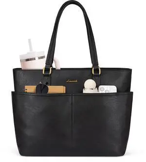 LOVEVOOK Laptop Tote Bag for Women, 15.6 Inch Lightweight Work Computer Bag with Cup Holder, Waterproof Office Briefcase Travel Handbag Purse Gifts for Women Black