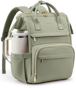 LOVEVOOK Laptop Backpack for Women with Giant Tumbler Holder Pocket,17.3 inch School College Book Bag Nurse Teacher Backpack,Work Travel Backpack Laptop Computer Bag,Olive green-Bean green-Kelp green