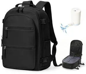 WEPLAN Vacuum Backpack Travel with Pump, Airbag Travel Backpack, 18x14x8 inches travel bag Spirit Approved, Carry On Suitcase Luggage, Laptop Backpack,Black